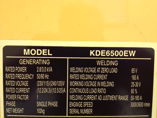 1 x Kipor 6500 3Kva Diesel Genset / 160 Amp Welder