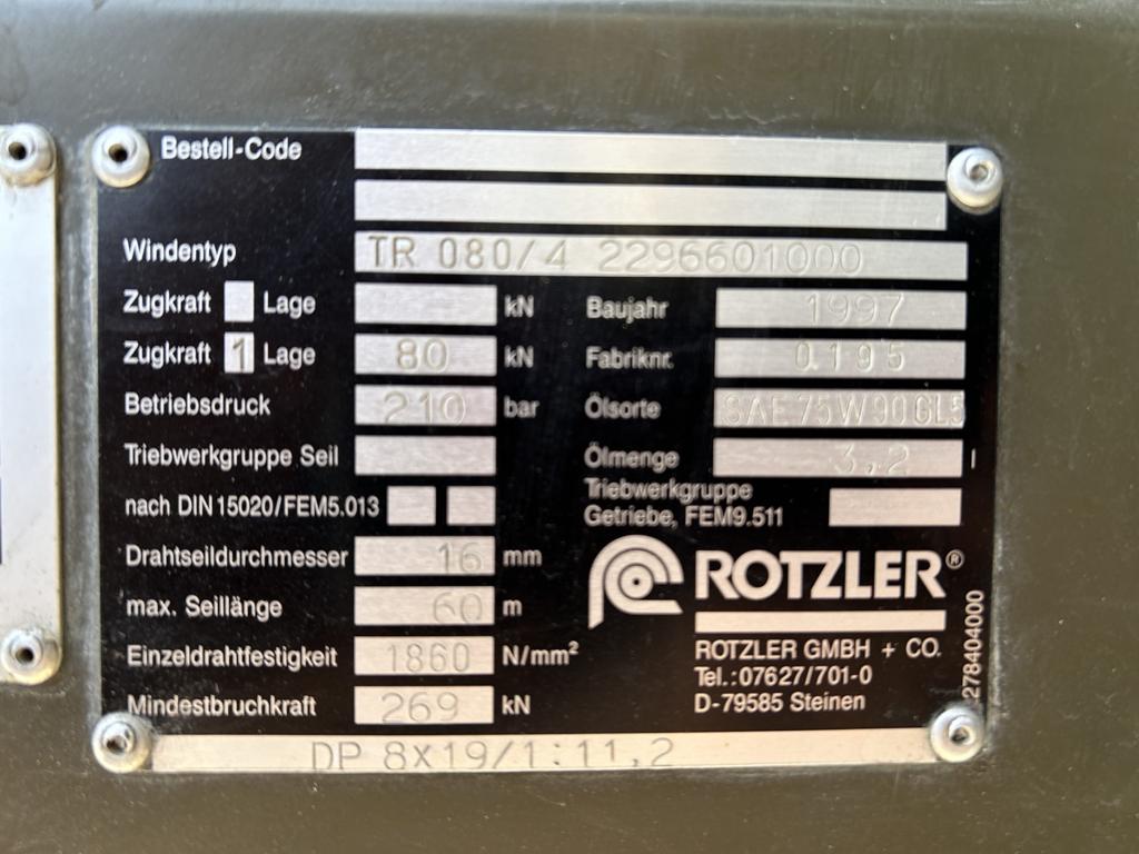 8,000 Kg Rotzler TR080 Hydraulic Winch with remote control